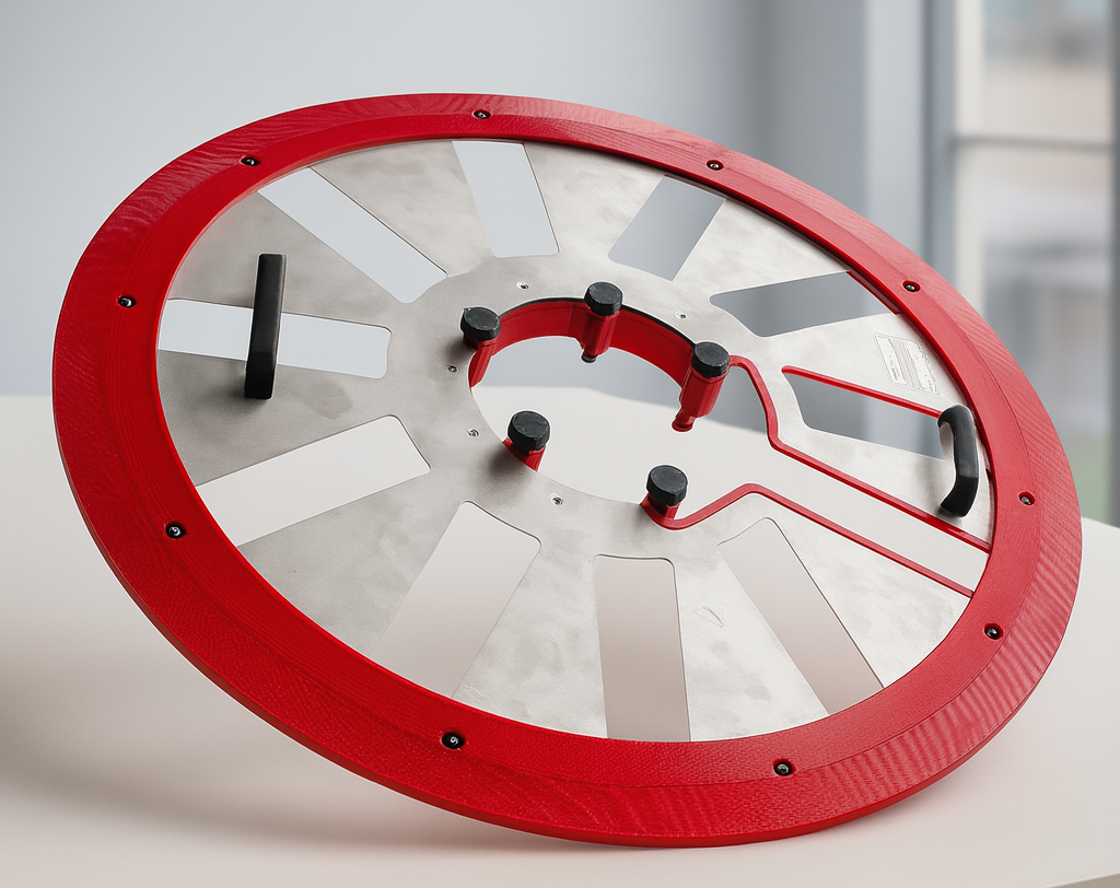 Pour faciliter cette étape, nous avons développé un outillage de traçage dédié, conçu spécifiquement pour épouser les formes du Fenestron et permettre un repérage rapide et reproductible des lignes de masquage ou de peinture.